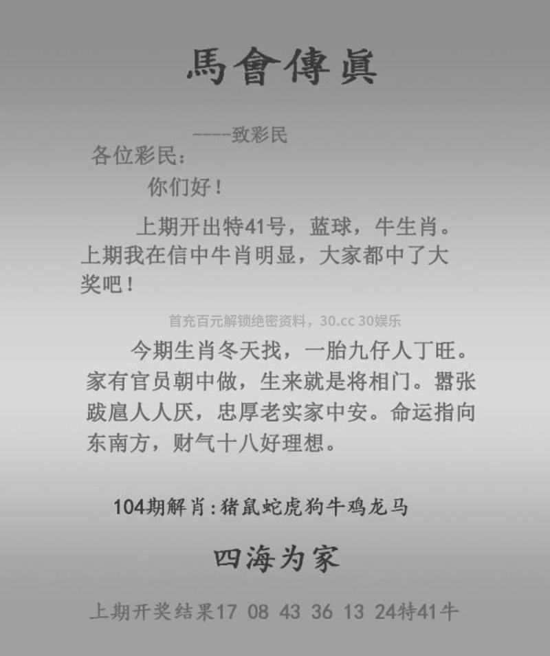 103期:绝杀叁肖【龙猪羊】开:牛41准 |